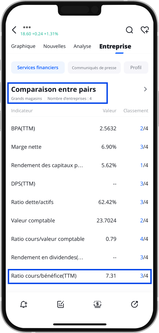 Na Webull, os investidores podem verificar a classificação de uma empresa em "Comparação entre pares" (como mostrado abaixo). Observe a classificação para ver se o preço é justo.