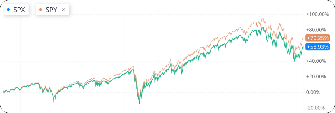 - O S&P 500 representa aproximadamente 80% do valor total do mercado de ações dos EUA. É uma boa indicação do mercado acionário dos EUA como um todo.